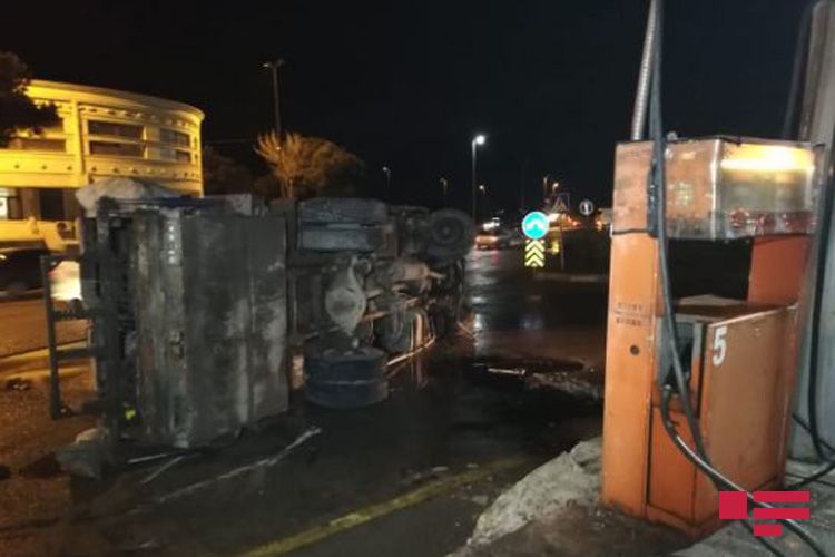 Bakı-Sumqayıt avtomobil yolunda yük maşını aşıb - FOTO
