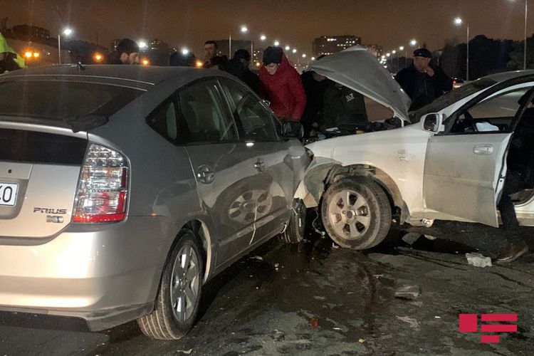 Zərbənin gücündən “Daewoo” markalı nəqliyyat vasitəsi idarəetmədən çıxaraq “Toyoto” markalı maşına çırpılıb. Qəza zamanı ümumilikdə 3 nəfər müxtəlif dərəcəli bədən xəsarətləri alıb. Yaralılar xəstəxanaya yerləşdiriliblər. (Apa)