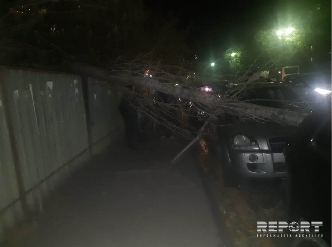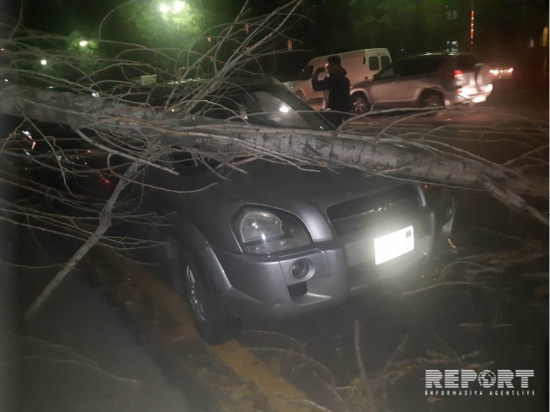 Bakıda ağac aşaraq avtomobilin üstünə düşüb - FOTO