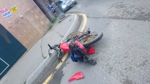 Hənifə Ələsgərov və Süleyman Rüstəm küçələrinin kəsişməsində qeydə alınan hadisə zamanı motosiklet sürücüsü ağır xəsarətlə 1 saylı kliniki tibbi mərkəzə çatdırılıb. Hazırda reanimasiya şöbəsində olan xəstənin vəziyyəti ağır olaraq qalır.