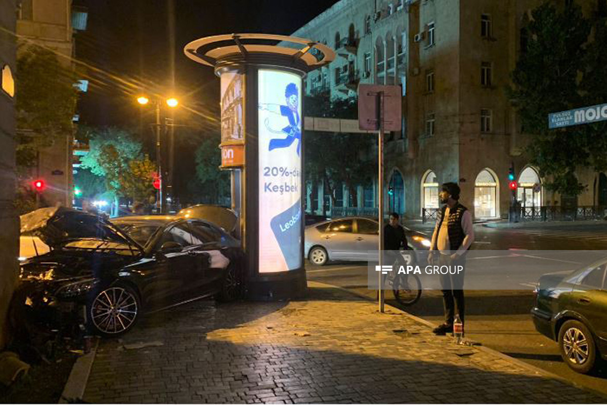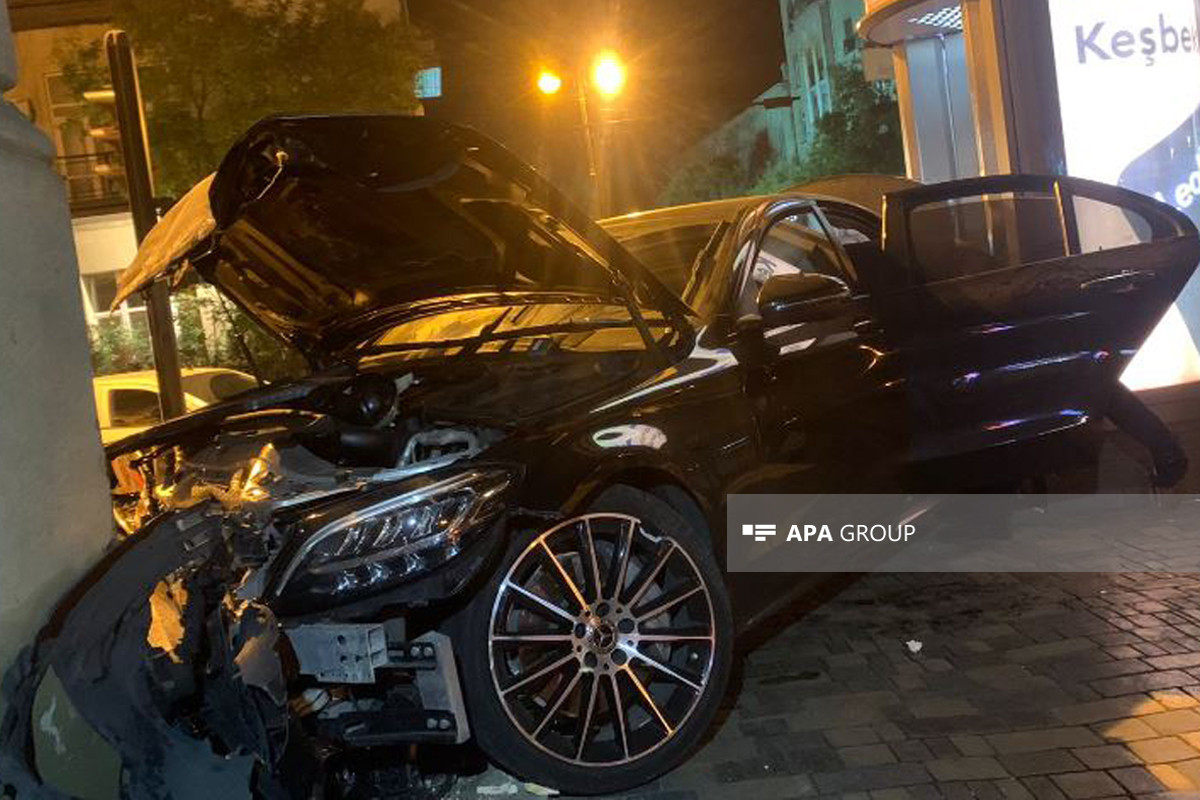 “Mercedes” Bakının mərkəzində divara çırpıldı, 2 qadın... - FOTO