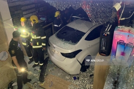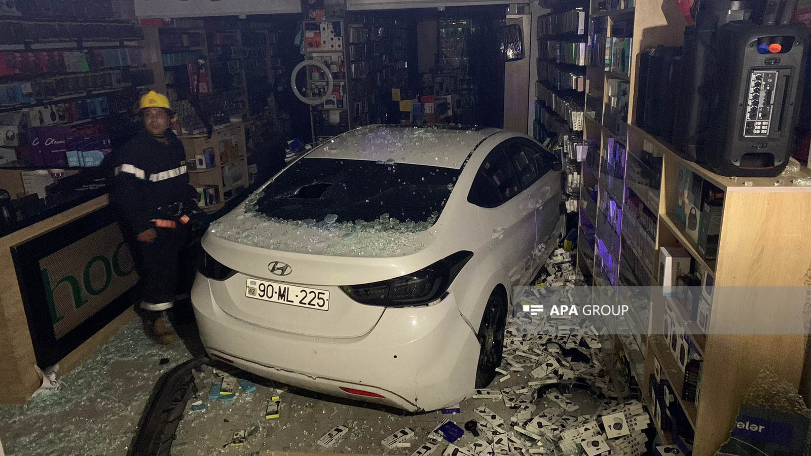 Bakıda avtomobil qaçıran şəxs maşını telefon mağazasına çırpdı - FOTO
