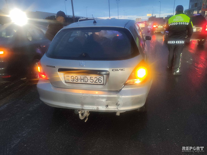 Bakıda bir neçə avtomobilin toqquşması tıxac yaratdı - FOTO