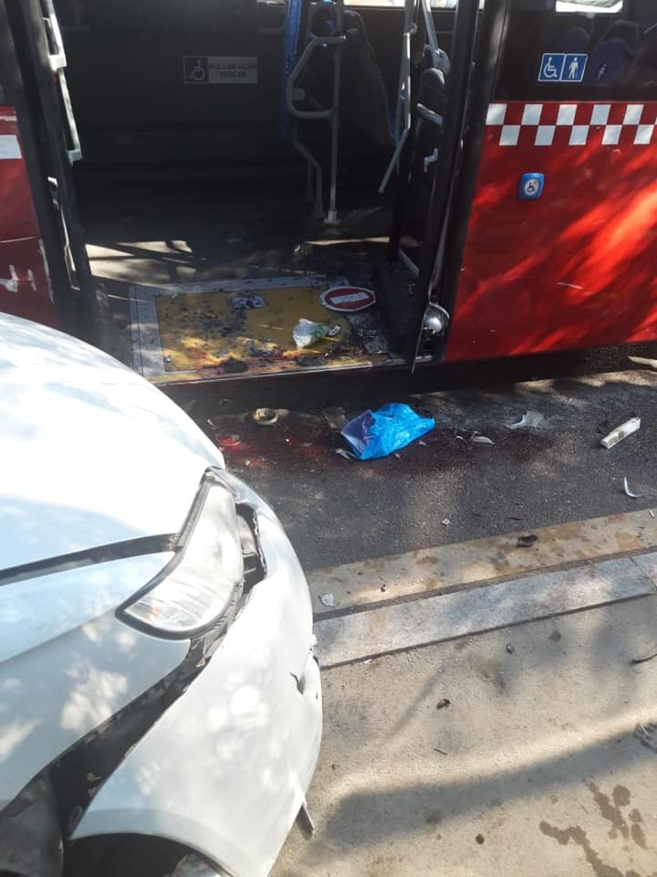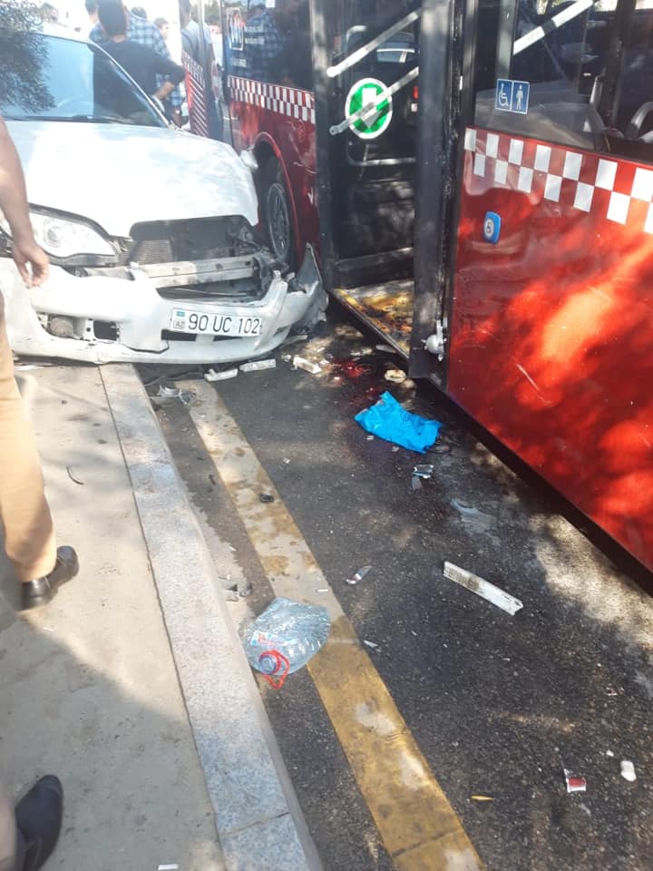 Bakıda maşın avtobusa çırpıldı - FOTO