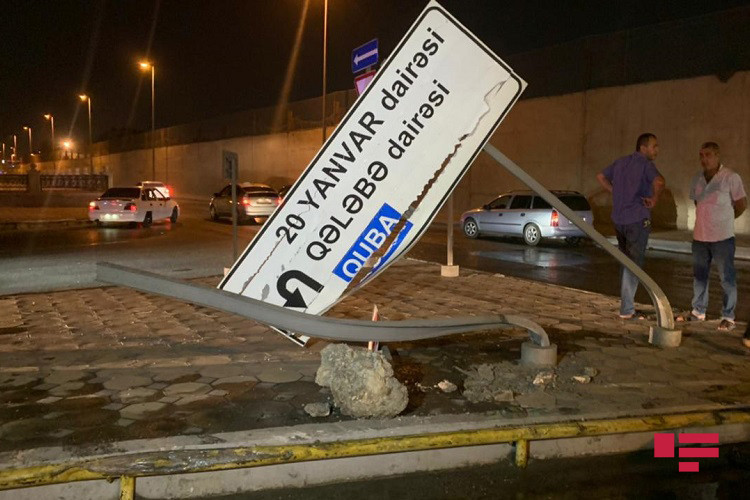 Bakıda "Mercedes"ə çırpılan “Hyundai” yol nişanına dəyərək aşıb - FOTO