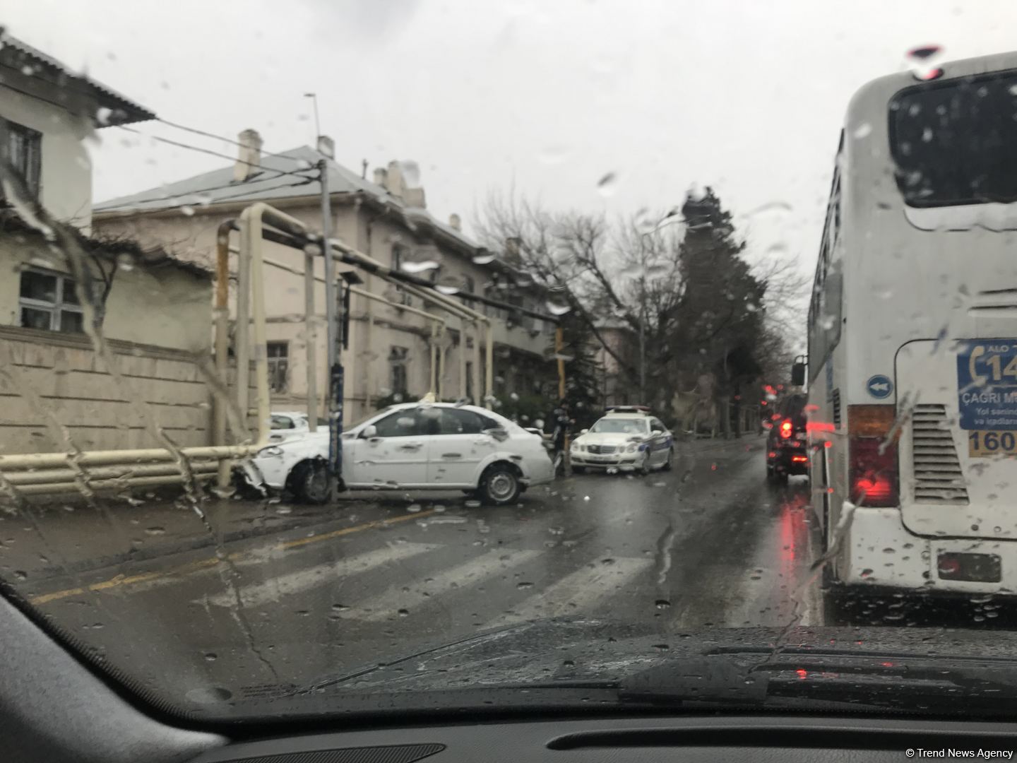 Bakıda minik avtomobili qaz borularına çırpılıb - FOTO