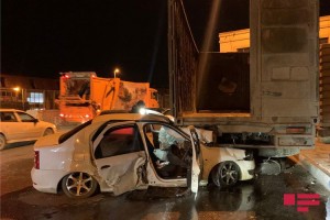 Bakıda minik avtomobili yük avtomobilinə çırpılıb, xəsarət alan var - FOTO