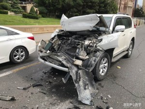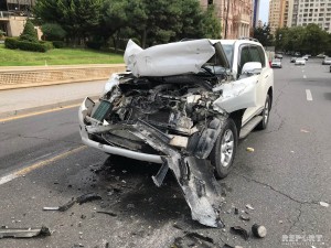 Bakıda yol qəzası baş verib. Avtosfer.az-ın “Report”a istinadən xəbərinə görə, hadisə paytaxtın Rəşid Behbudov küçəsində qeydə alınıb. Belə ki, “Toyota Land Cruiser Prado” markalı, 90 XP 170 dövlət qeydiyyatı nişanlı minik avtomobili hərəkətdə olarkən qəfil idarəetməni itirərək “QAZel” markalı 90 CX 983 dövlət nömrə nişanlı yük avtomobilinə çırpılıb.