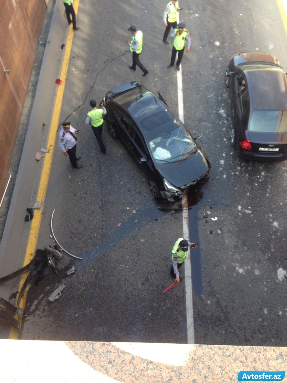 Bakıda qəza: avtomobil yoldan çıxaraq tunelə düşdü - FOTO