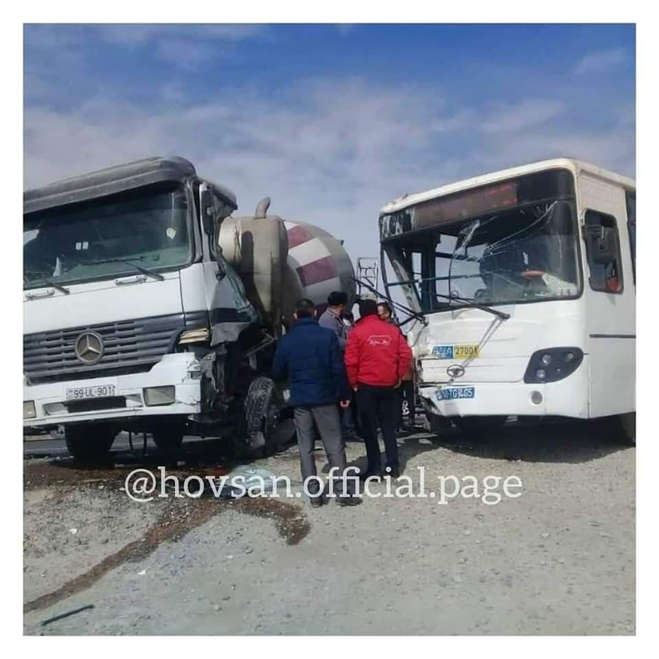 Bu gün Bakıda sərnişin avtobusu betonqarışdıran maşınla toqquşub.