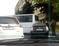 Bakıda avtomobil ilə sərnişin avtobusu toqquşub.