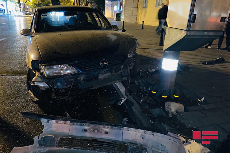 Bakıda sürətlə hərəkət edən “OPEL” dirəyə çırpıldı: xəsarət alan var - FOTO
