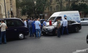 Bakının mərkəzində “Porsche” qəza törədib - FOTO