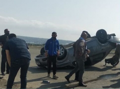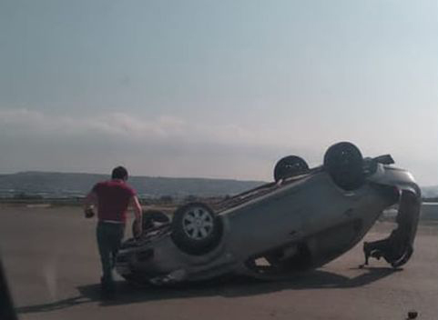 Başı telefona qarışan sürücü avtomobili aşırdı - FOTO