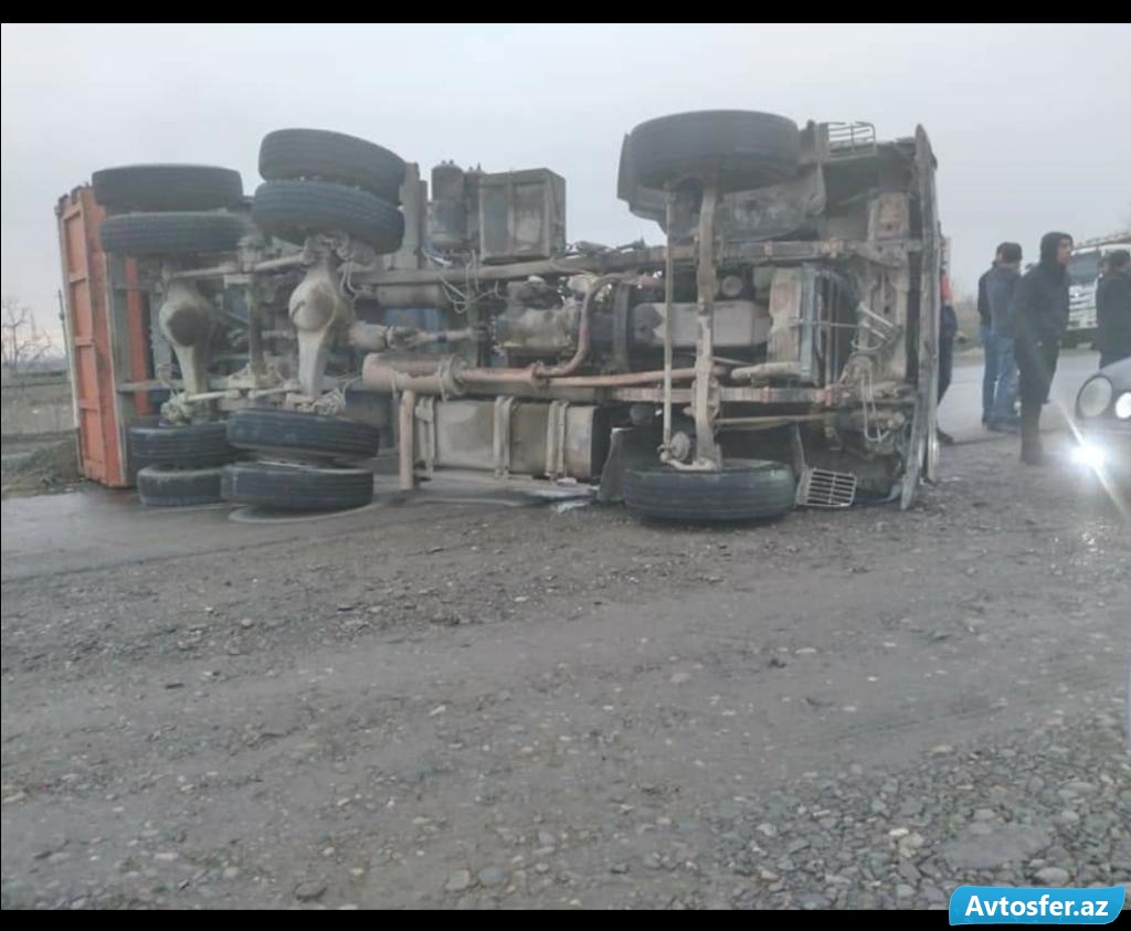 Bərdə-Yevlax yolunda "Kamaz" aşdı: sürücü xəsarət alıb - FOTO