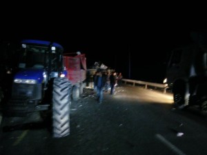 Belə ki, Tovuz rayon sakini, 1958-ci il təvəllüdlü Vaqif Qurban oğlu İbrahimovun idarə etdiyi "QAZel" markalı yük avtomobili Bərdə rayonunun Hacallı kənd sakini Rahib Akif oğlu Məmmədovun idarə etdiyi traktorla toqquşub. Nəticədə "QAZel"in sürücüsü və sərnişini, 1960-cı il təvəllüdlü Hikmət İsa oğlu Allahverdiyev müxtəlif dərəcəli bədən xəsarətləri alıblar. Yaralılar Bərdə Rayon Mərkəzi Xəstəxanasına yerləşdirilib. Onların vəziyyətinin orta ağır olduğu bildirilir.