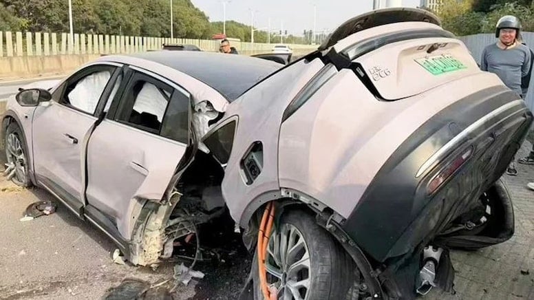 Çinin elektrikli avtomobil istehsalçısı “Nio”nun “EC6” modeli Şanxayda baş verən ağır yol-nəqliyyat hadisəsində, demək olar ki, yarıya bölünüb.