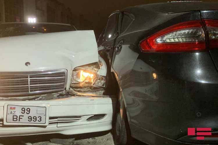 Zərbənin gücündən “FORD” yolayrıcı betona və işıq dirəyinə dəyib. Qəza nəticəsində “Mercedes”in sürücüsü Ağamir Məmmədov xəsarət alıb.