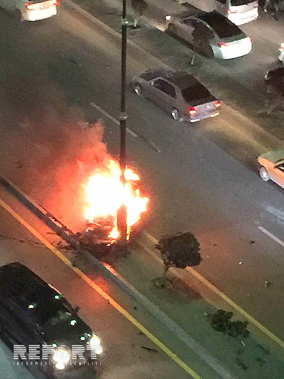 Bakıda ağır yol-nəqliyyat hadisəsi baş verib. Avtosfer.az "Report"a istinadən xəbər verir ki, hadisə Yasamal rayonu ərazisində, Yasamal Rayon Polis İdarəsinin qarşısında olub. Belə ki, A.Salamzadə küçəsi ilə hərəkət edən avtomobilin sürücüsü idarəetməni itirərək yol kənarındakı elektrik dirəyinə çırpılıb. Nəticədə nəqliyyat vasitəsi zərbənin təsirindən alışıb. Hadisə yerinə bir neçə yanğısöndürən maşın cəlb olunsa da, nəqliyyat vasitəsi tamamilə yanaraq yararsız vəziyyətə düşüb.