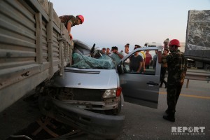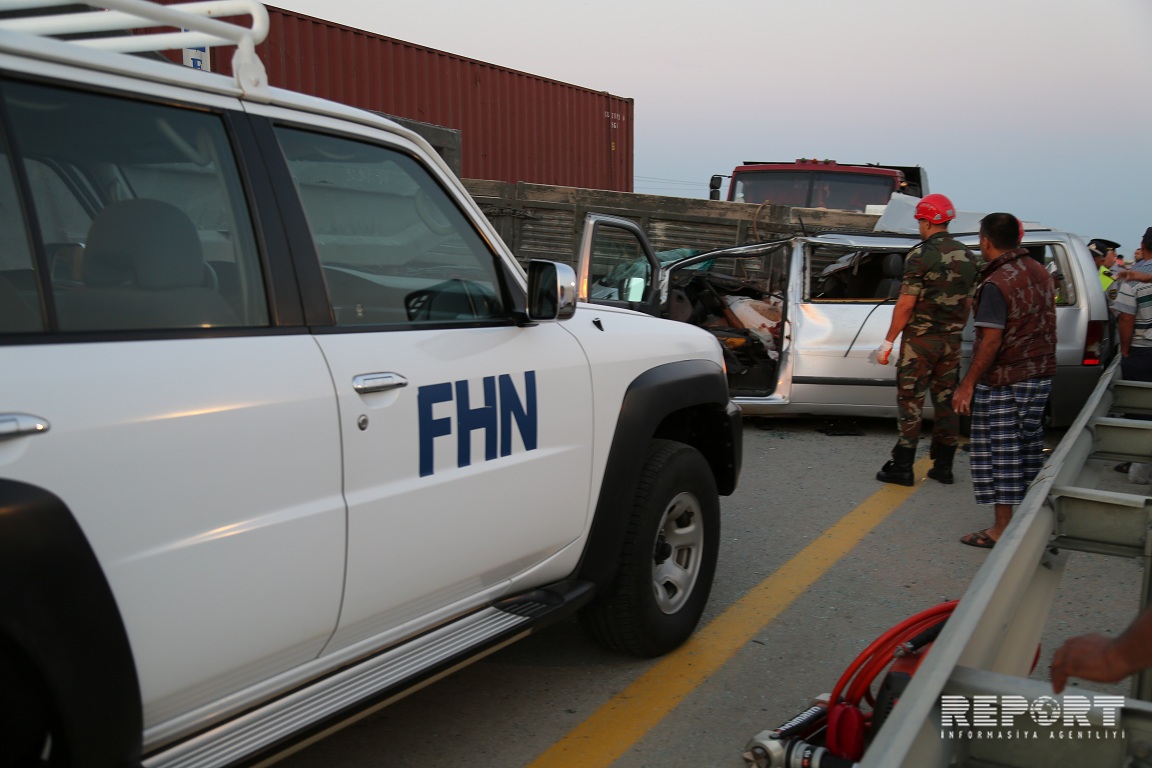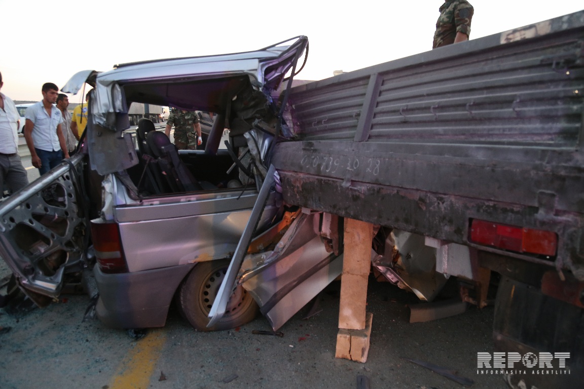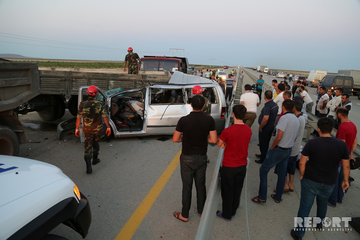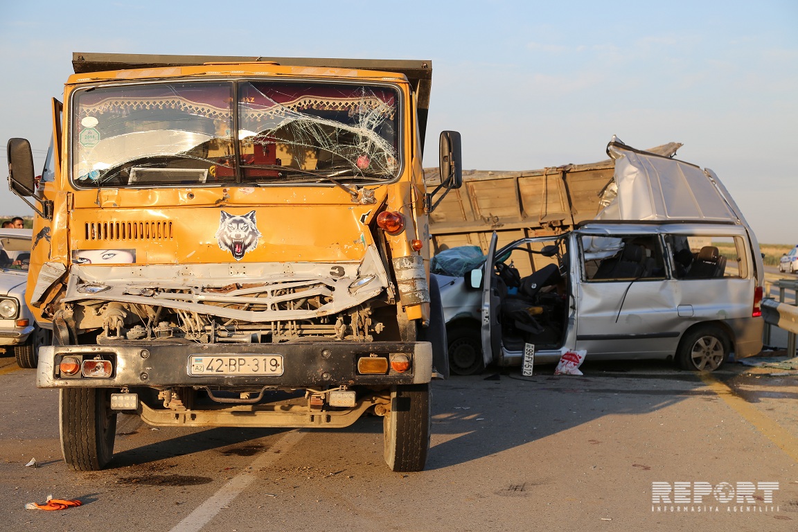 Qəza üç avtomobilin toqquşması nəticəsində baş verib. Yol ilə hərəkətdə olan "Kamaz" markalı qoşqulu yük maşınının sürücüsü sükan arxasında yuxulayaraq öndə gedən digər "Kamaz"a, ən sonda gələn “Mercedes” markalı mikroavtobus isə qoşqulu yük maşınına çırpılıb. Nəqliyyat vasitəsində sürücü ilə birgə ümumilikdə 9 nəfər olub. onlardan 3-ü hadisə yerində ölüb. Daha bir nəfər sonradan xəstəxanada keçinib.