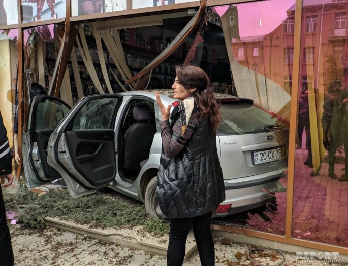 Gəncədə avtomobil mağazaya çırpılıb - FOTO