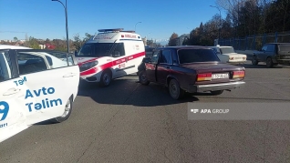Gəncədə təlim avtomobili "VAZ 2107" ilə toqquşdu, xəsarət alan var - FOTO
