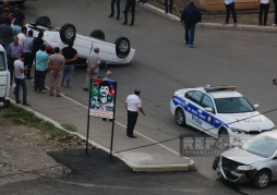 Gəncədə toqquşan avtomobillərdən biri aşdı, xəsarət alan var - FOTO