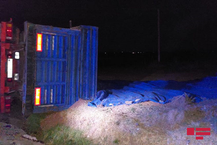 Yük yeri buğda ilə dolu olan "MAN" markalı yük maşını Gəncə istiqamətdə hərəkətdə olarkən idarəetmədən çıxıb və yoldan çıxaraq aşıb. Qəza zamanı xəsarət alan olmasa da, yük maşınının qoşqusundakı 20 tona yaxın buğda yol kənarına dağılıb.
