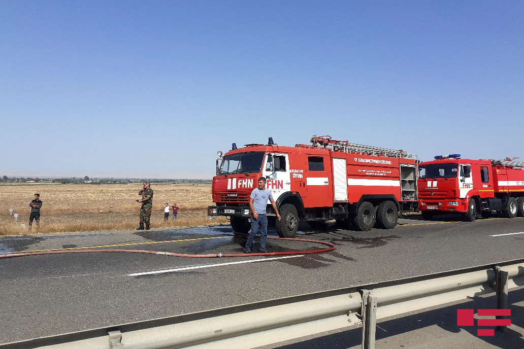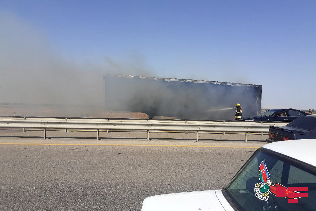 Hərəkətdə olan "TIR" tipli yük maşının qoşqusunda anidən yanğın başlayıb. Dərhal hadisə yerinə FHN əməkdaşları cəlb olunub. Yanğın zamanı yük maşının qoşqusu içi dolu yükü ilə birlikdə yanıb. Yük maşının özü yanğından mühafizə olunub. Havanın küləkli olması yanğın söndürənlərin işində çətinliklər yaradıb.