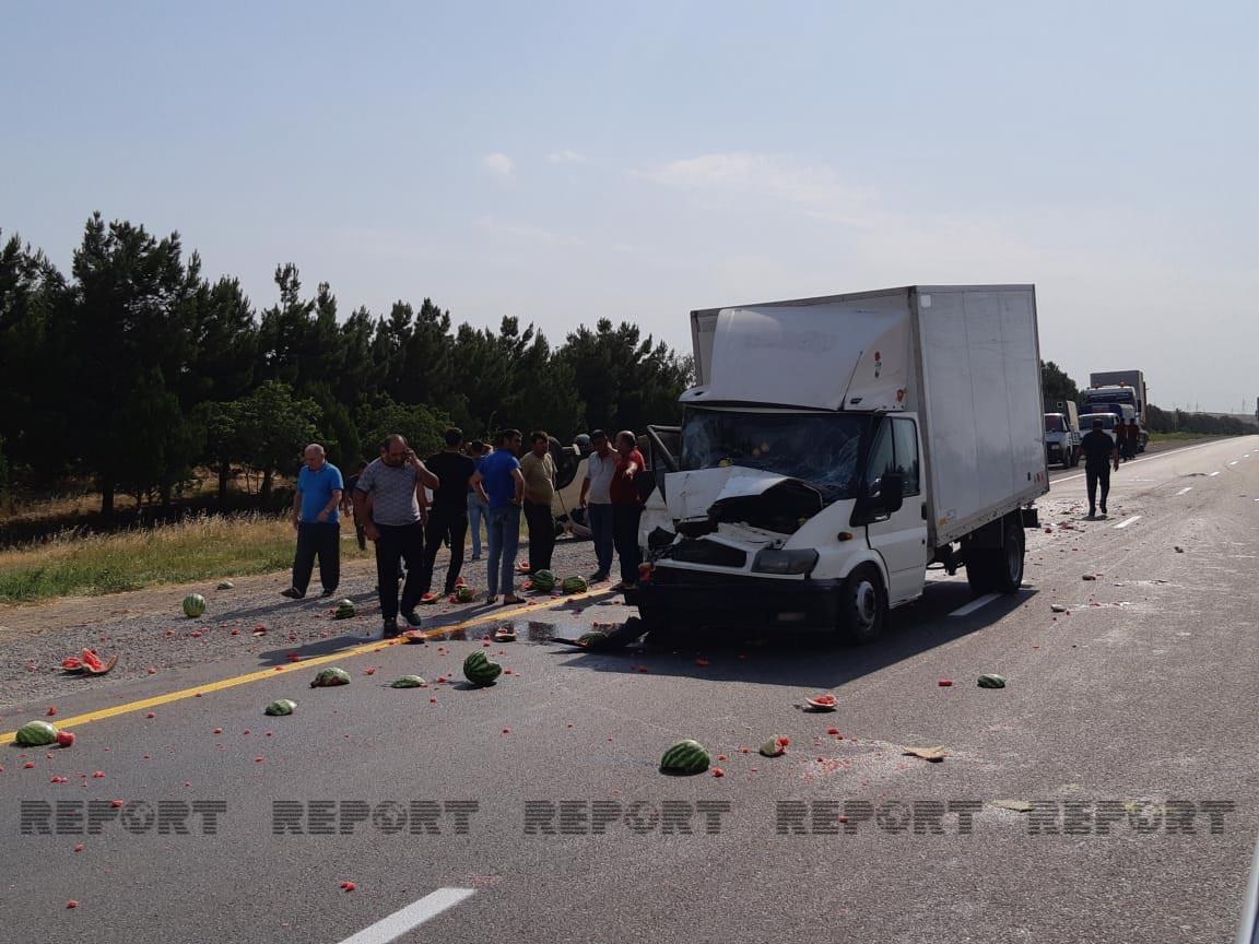 Hacıqabulda iki yük maşını toqquşdu, qarpızlar yola dağıldı - FOTO