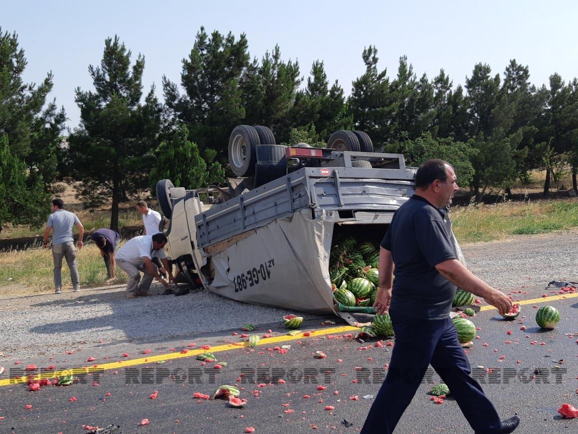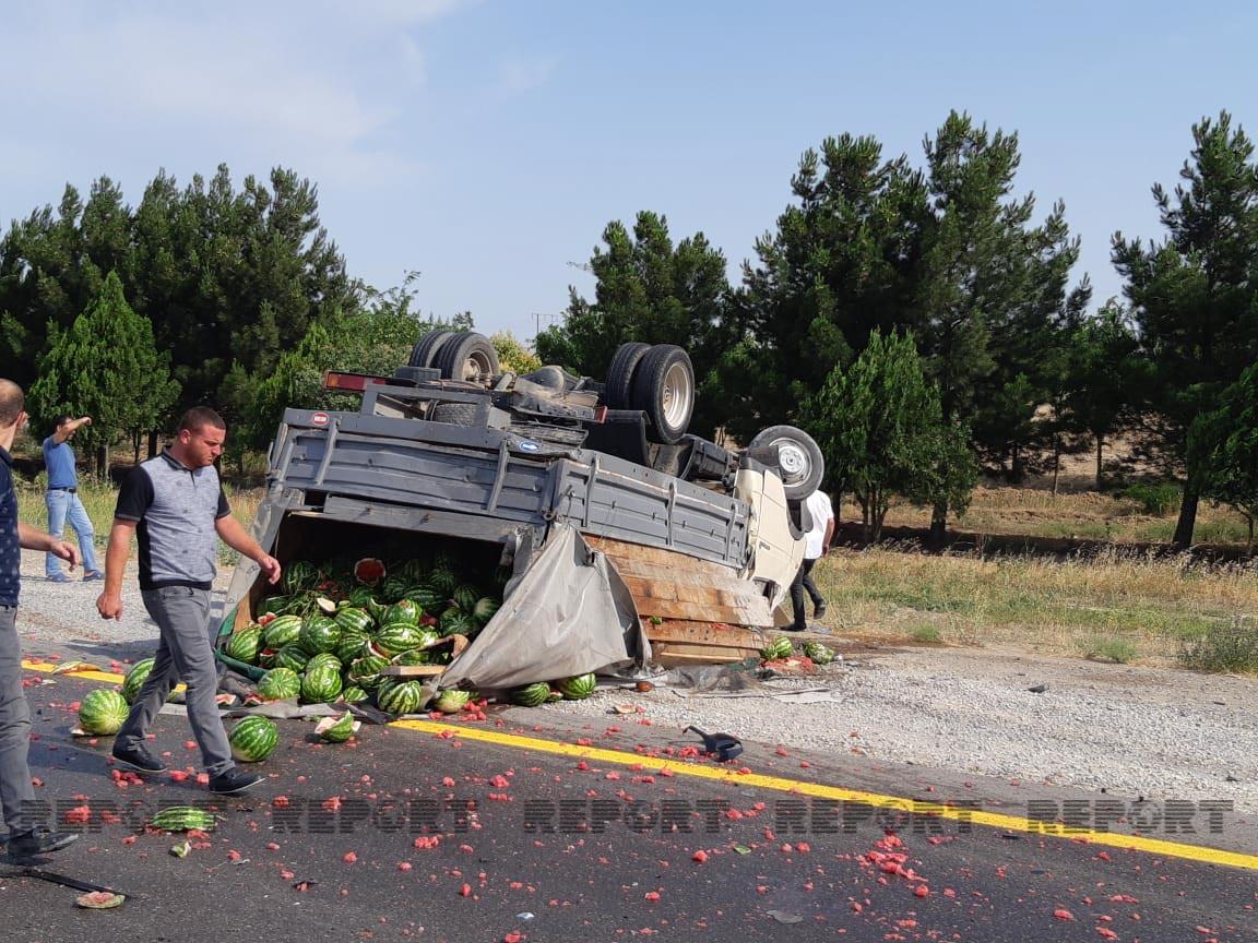 Nəticədə avtomobillərə ciddi ziyan dəyib, qarpızlar yola tökülüb.