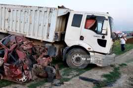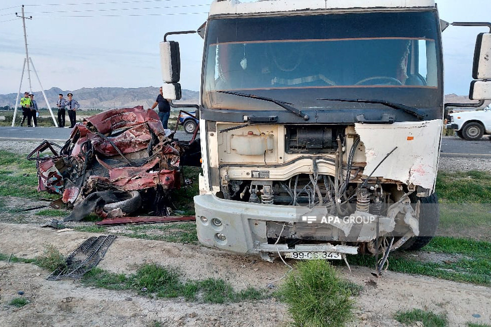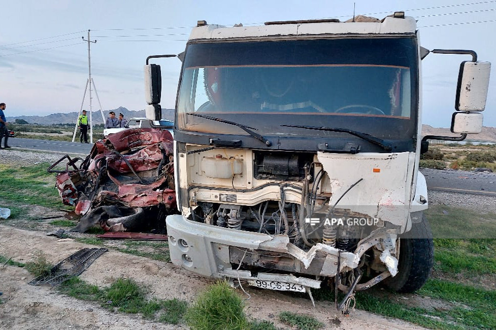 Hadisə Hacıqabul şəhərində qeydə alınıb. "Mercedes" markalı avtomobil "Shagman" markalı yük avtomobili ilə toqquşub.