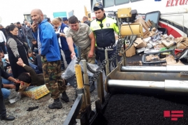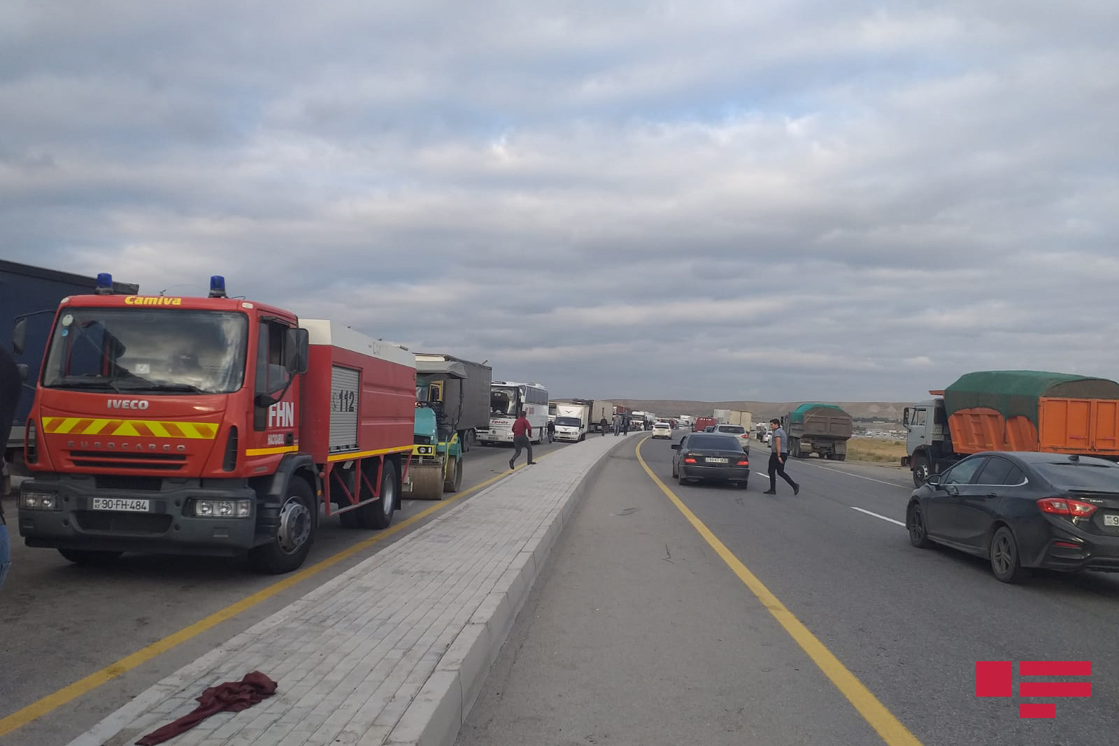Hadisənin baş verdiyi Bakı-Qazax magistralının 116-cı kilometrində uzun tıxac yaranıb.///apa