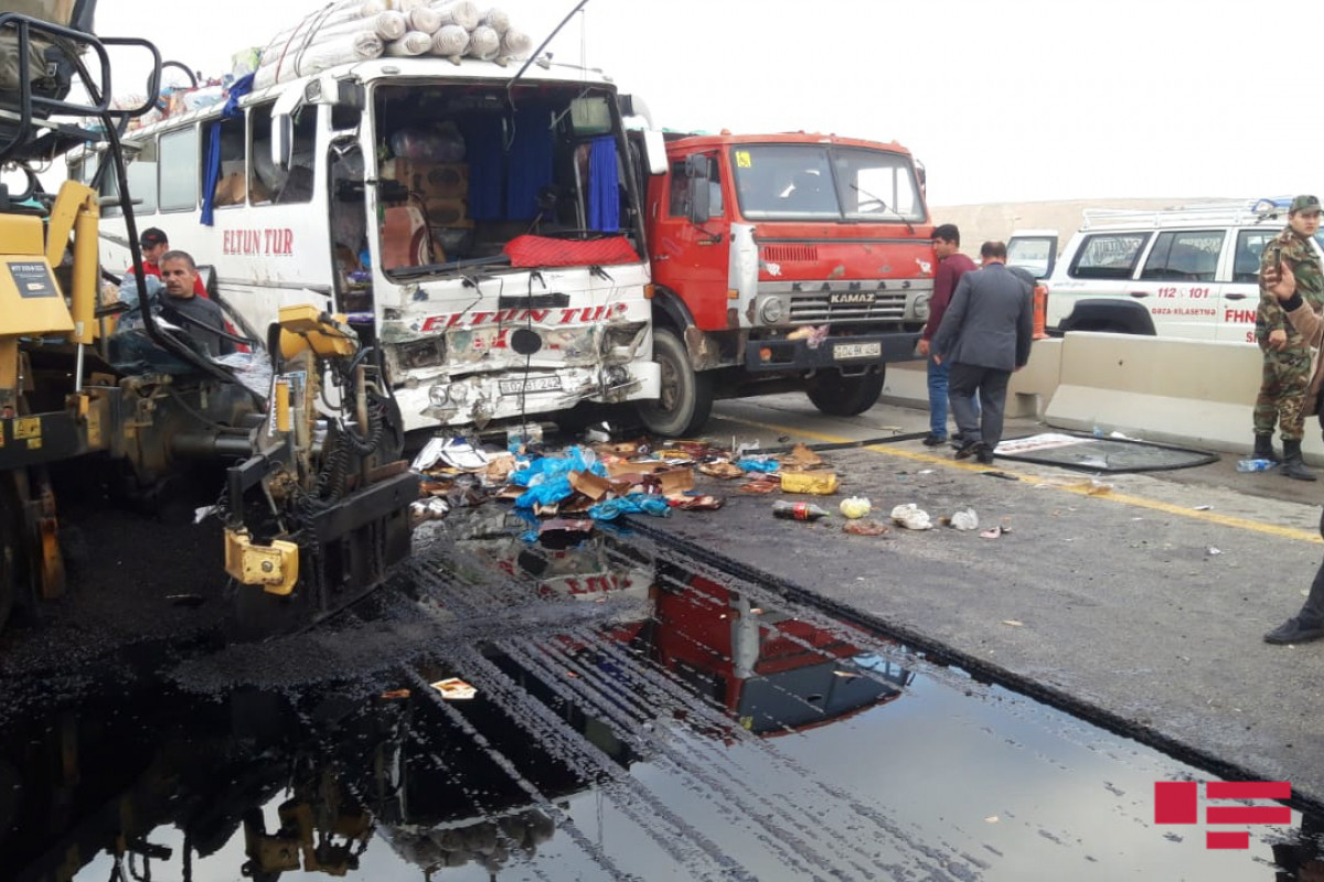 APA-nın məlumatına görə, hadisə Hacıqabul-Horadiz magistralının Hacıqabul rayonu ərazisindən keçən hissəsində qeydə alınıb. İri tutumlu sərnişin avtobusu asfaltbasan maşın və daşla dolu avtomobillə toqquşub.