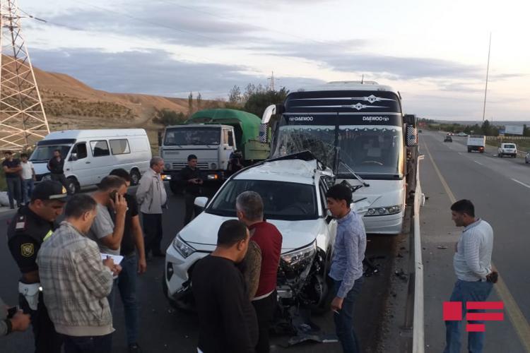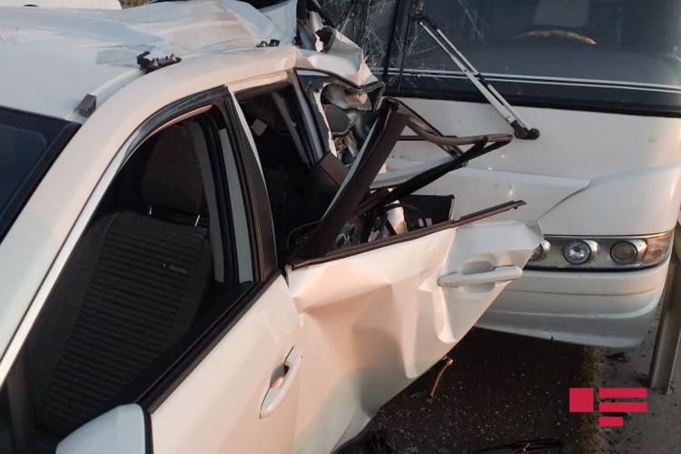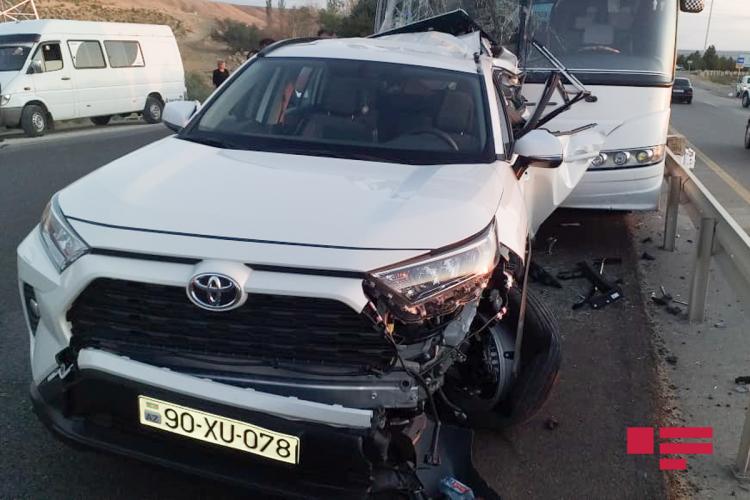 Hacıqabulda sərnişin avtobusu “Toyota”ya çırpılıb - FOTO