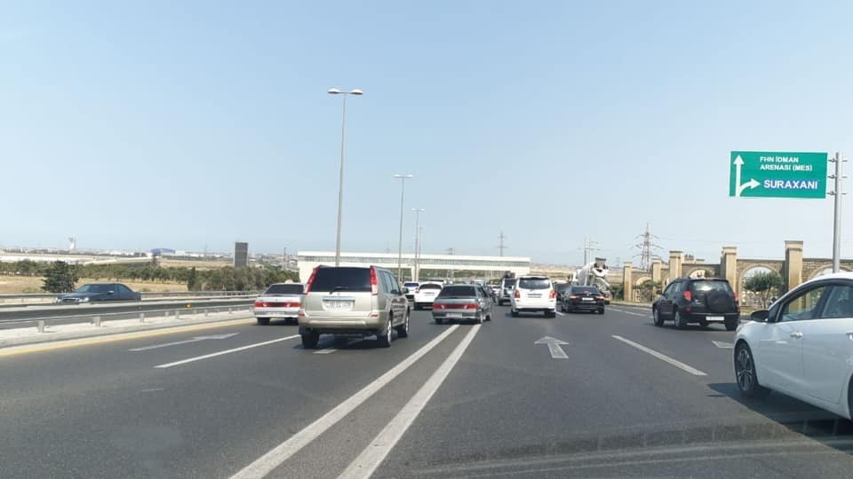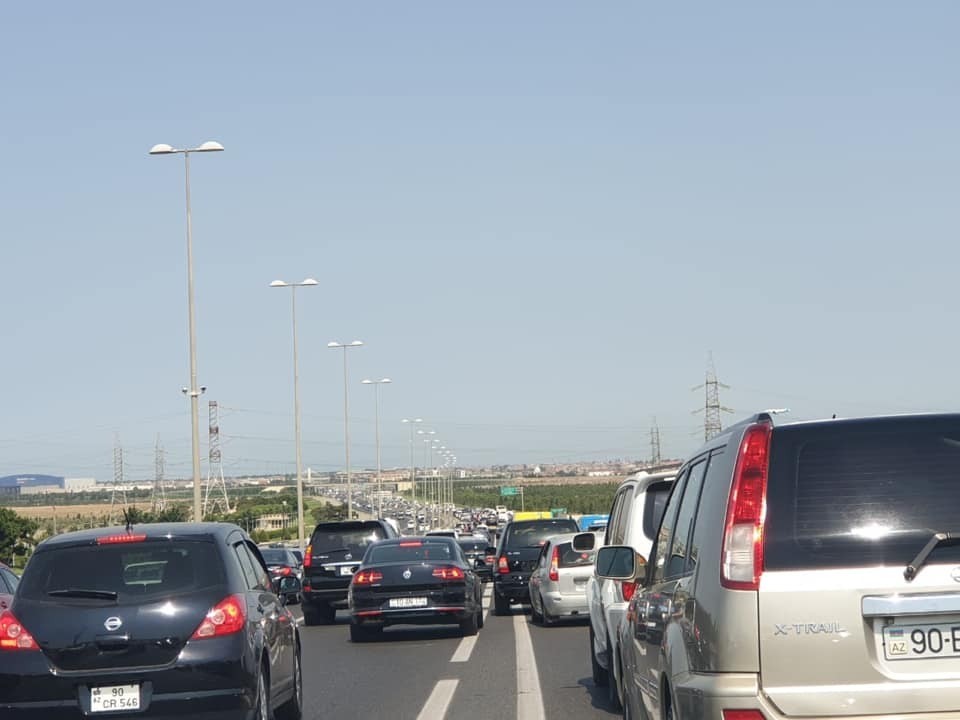Avtomagistralında tıxac yaranıb