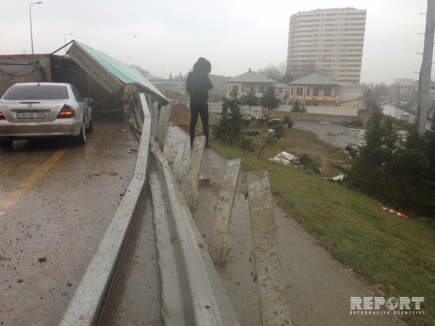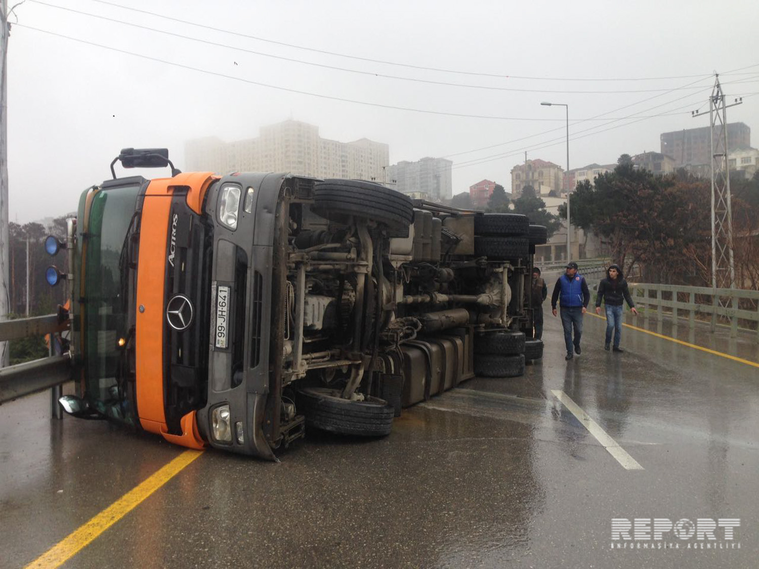 Bakıda iribuynuzlu heyvanla dolu yük avtomobili aşıb. "Report"un xəbərinə görə, hadisə Bakı-Sumqayıt şossesinin Biləcəri qəsəbəsinin ərazisinə düşən hissəsində baş verib. 99-JH-641 dövlət qeydiyyat nişanlı "Mercedes Actros" markalı yük avtomobilinin sürücüsü idarəetməni itirib. Nəticədə avtomobil yolayrıcı dəmir çəpərə çırpılaraq aşıb. Avtomobilin içərisində olan iribuynuzlu heyvanlar yol kənarına tökülüb. Bir heyvan tələf olub. Yolda sıxlıq yaranıb. Faktla bağlı əraziyə Yol Patrul Xidmətinin əməkdaşları cəlb edilib.