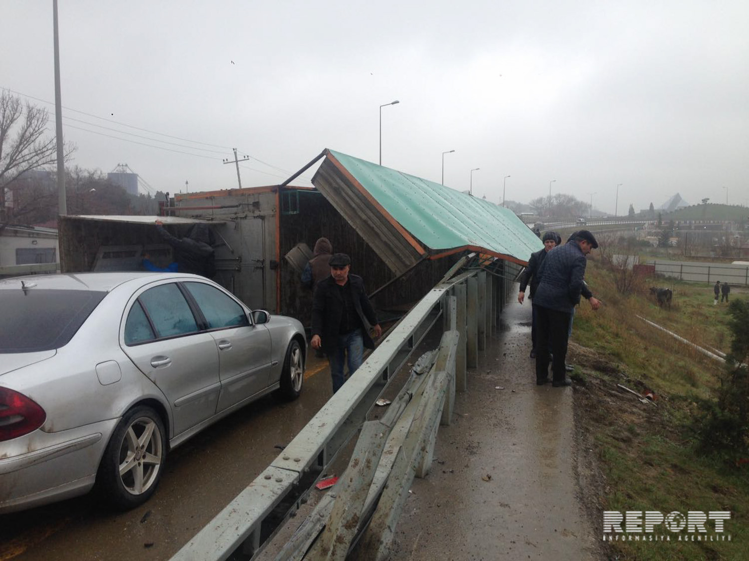 Heyvanla dolu yük avtomobili aşdı: Yolda tıxac yarandı - FOTO