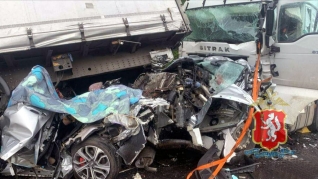 İki yük maşının arasında qalan “Chery” əzildi – 3 nəfər öldü - VİDEO