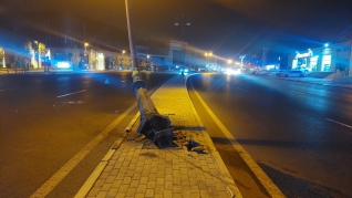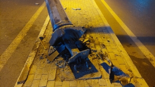 İşıq dirəyini aşıran avtomobil yararsız hala düşdü - FOTO