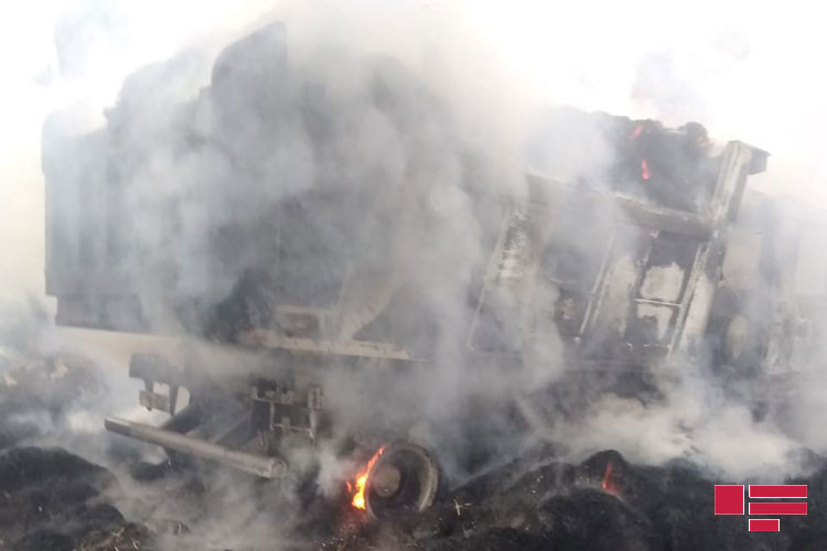 İsmayıllıda ot daşıyan yük maşını yanıb - FOTO