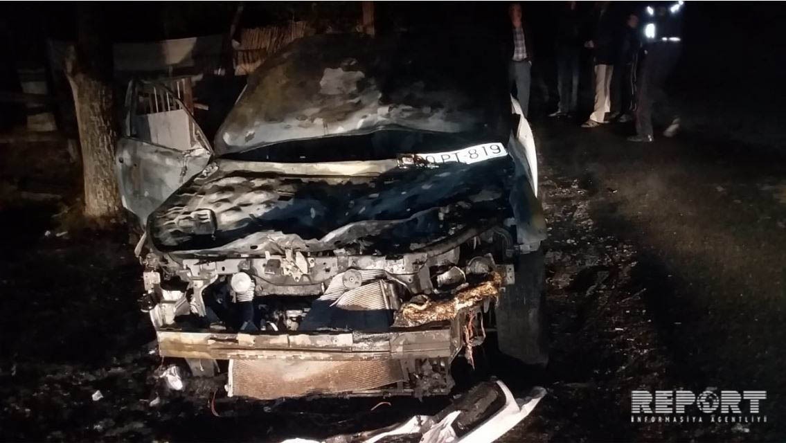 Kürdəmir rayonunda avtomobil yanıb - FOTO