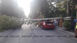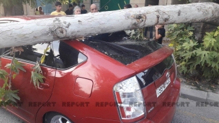 Bu zaman yol kənarındakı iri gövdəli ağac kökündən qoparaq avtomobilin üzərinə aşıb, nəqliyyat vasitəsinə ciddi ziyan dəyib.
