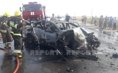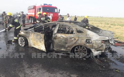 Belə ki, üç "Hyundai" markalı avtomaşın toqquşub. Hadisə zamanı avtomobillərdən biri Bakı sakini 44 yaşlı Qədirov Ceyhun Şakay oğluna məxsus nəqliyyat vasitəsi yanaraq külə dönüb və sürücü xəsarət alıb.