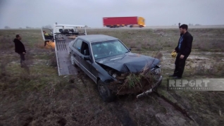 Tərtər rayon sakini Bayramlı Ceyhun İdris oğlunun idarə etdiyi "Mercedes" markalı avtomobil Bakı istiqamətində hərəkətdə olarkən qəfildən idarəetmədən çıxıb.