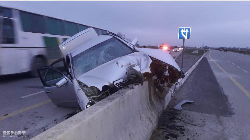 Bərdə şəhər sakini, 1959-cu il təvəllüdlü Rövşən Müslüm oğlu Ağayev idarə etdiyi "Mercedes" markalı minik avtomobili ilə Gəncə istiqamətində hərəkətdə olarkən nəqliyyat vasitəsinə idarəetməni itirib və maşın yol kənarındakı beton lövhəyə çırpılıb. Nəticədə R.Ağayev və sərnişini, 1967-ci il təvəlüdlü Gəncə şəhər sakini Həqiqət Əlihüseyn qızı Məmmədova müxtəlif dərəcəli bədən xəsarətləri alıblar. R.Ağayev Kürdəmir rayon Mərkəzi Xəstəxanasının Travmatologiya şöbəsinə yerləşdirilib. H.Məmmədovanın vəziyyəti ağır olduğundan o, həmin xəstəxananın Reanimasiya şöbəsinə yerləşdirilib.