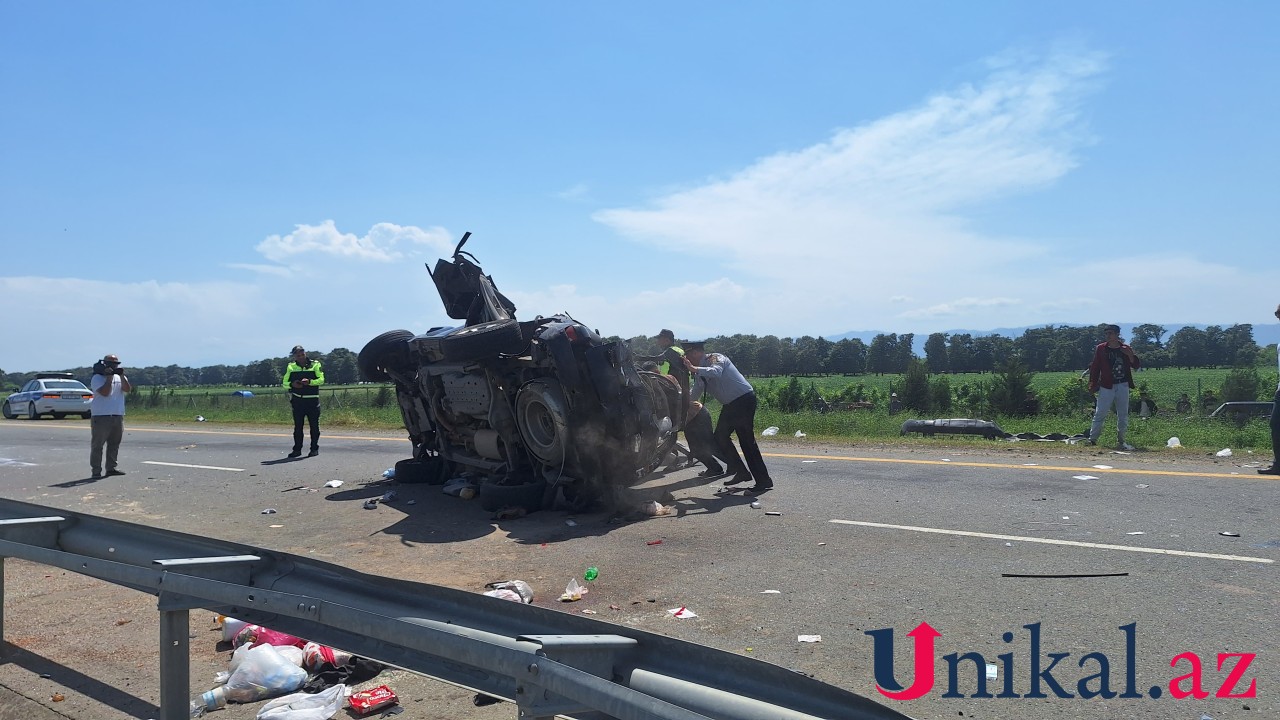 Sürücü müxtəlif dərəcəli bədən xəsarətləri alıb. Avtomobildə olan sərnişinlər – sürücünün övladları, 2023-cü il təvəllüdlü Teymurov Əli və 2016-cı il təvəllüdlü Teymurova Banu, qohumu, 2002-ci il təvəllüdlü Alışov Aydın Təhməsib oğlu hadisə yerində həyatlarını itiriblər.