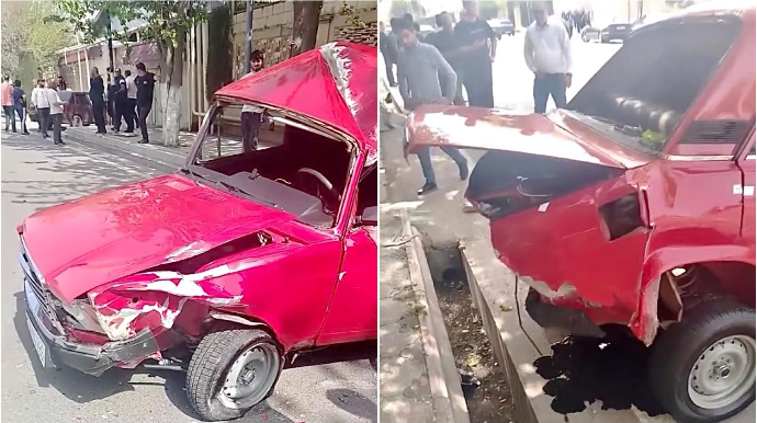 “Mercedes”lə “VAZ” toqquşdu, bir nəfər yaralandı - VİDEO