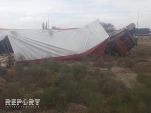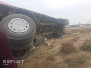 Bakı-Ələt yolunda mərmər daşıyan TIR yük avtomobili qəza törədib. Avtosfer.az-ın "Report"a istinadən məlumata görə, nəqliyyat vasitəsinin qabaq təkəri partlayıb. Nəticədə yük maşını qarşısındakı "Mercedes" markalı avtomobili vurub. Zərbənin təsirindən TIR yolun kənarına düşərək aşıb. Hadisə nəticəsində ölən və yaralanan olmayıb. Faktla bağlı araşdırma aparılır.