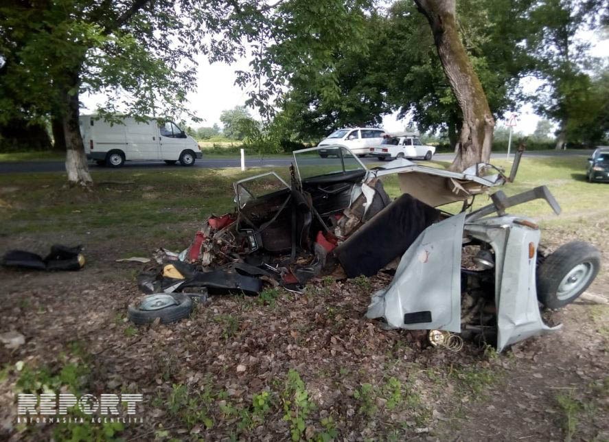 Oğuzda avtomobil ağaca çırpıldı: sürücü ölüb - FOTO